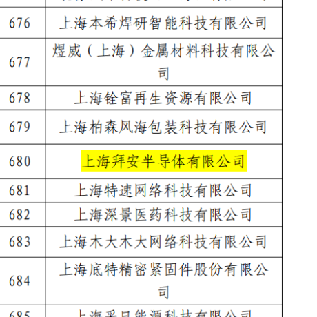 近日,上海拜安半导体有限公司成功获评2025年度上海市”专精特新”中小企业。
