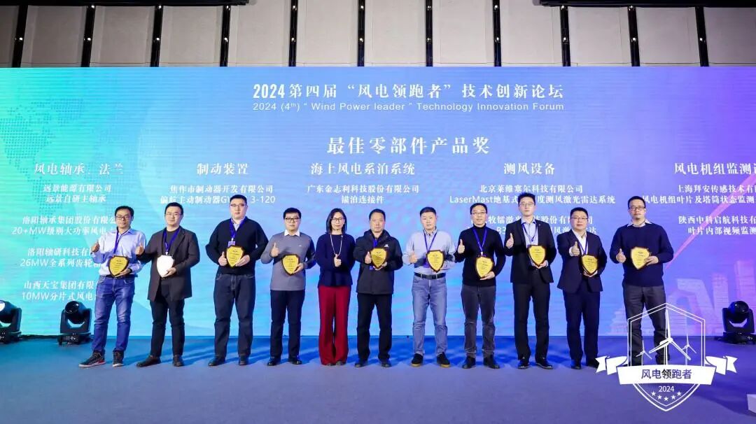 公司受邀参加了2024(第四届)“风电领跑者”技术创新论坛,并凭借“风电机组叶片及塔筒状态监测及损伤识别系统”这一创新产品,荣获了2024“风电领跑者”“最佳零部件产品奖”。