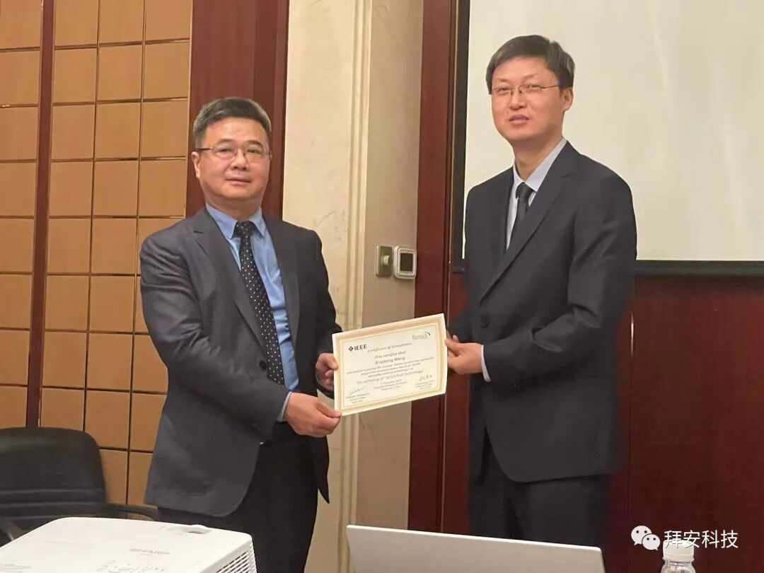 会议的第二天,上海拜安传感技术有限公司的总工兼事业部总经理王新中,在分会场上进行了题为《基于光纤MEMS传感技术的岸桥结构状态在线监测系统》的演讲。