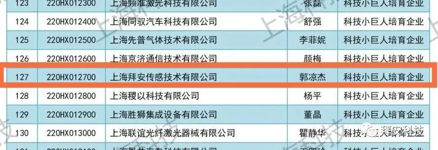 近日,上海市科学技术委员会正式发布了《关于公布2022年度上海市科技小巨人工程立项名单的通知》。上海拜安传感技术有限公司(简称“拜安科技”)经公开自主申报、各区审核推荐、专家评审和公示,被市科委、市经济信息化委和市财政局审定为2022年度上海市科技小巨人培育企业,正式获得2022年度上海市“科技小巨人”工程立项。