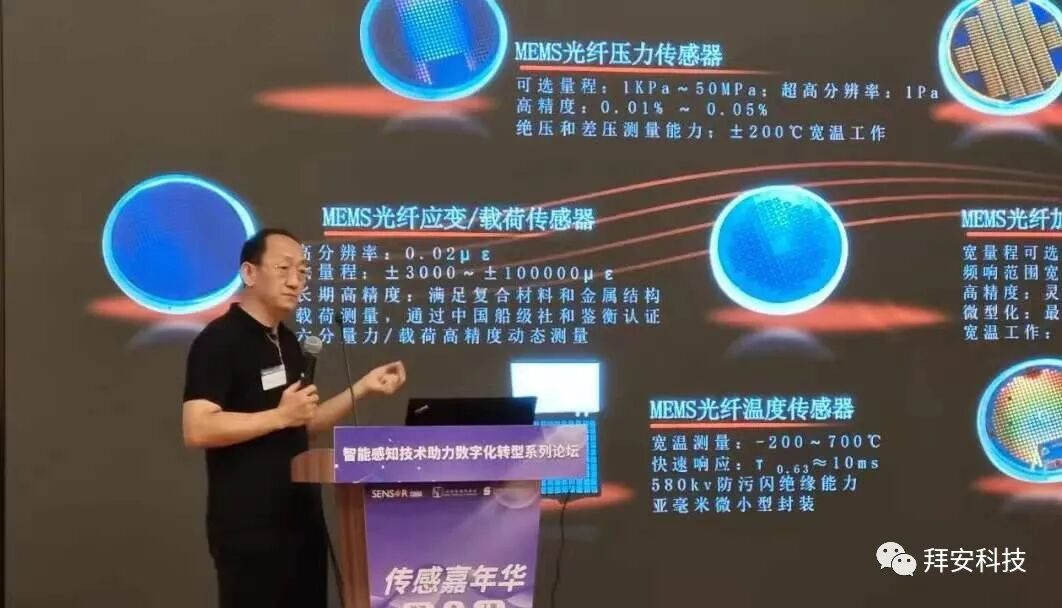 拜安科技董事长钟少龙表示,要推动清洁能源和工业装备数字化、智能化发展、拜安MEMS光纤传感器已在海陆风电、轨道交通、航空航天、船舶海工、土木工程、石油化工等各工业领域广泛应用。
